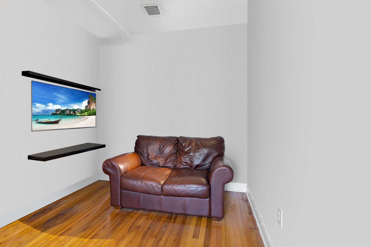 Empty a room of unappealing furniture so that the image helps buyers visualize themselves in the home.
